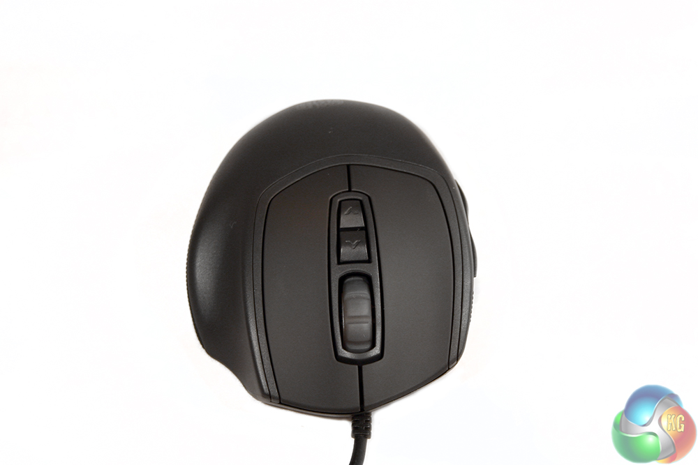 Behind the scroll wheel are the DPI selections – up and down – which have been moved further back on this version of the mouse and given their own surround for good measure.