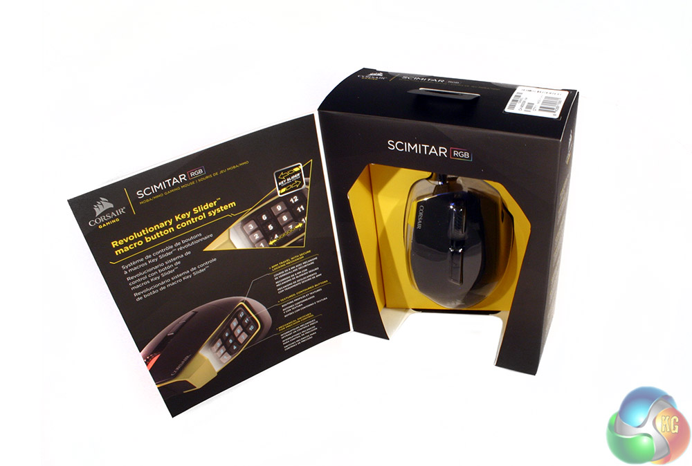 The packaging for the Scimitar is high caliber, featuring a nice mix of matt and glossy card. The front of the box showcases some of the more exciting features, including the RGB lighting, 12K DPI optical sensor and the key slider for all of those additional buttons.
