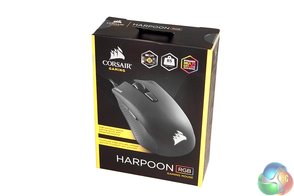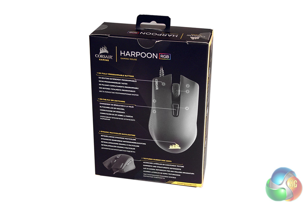 Despite being an entry-level gaming mouse, the Corsair Harpoon does actually arrive in an attractive package. The box is neat and compact and has some good product shots to help break down the important features.
