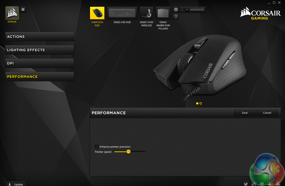 The Corsair Harpoon is a reasonably comfortable mouse, offering a well shaped body for claw, finger and palm grips should you so wish. I liked the use of rubber grips on the sides for keeping your digits in touch with the mouse at all times and that helps prevent issues with perspiration.