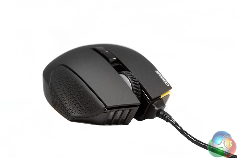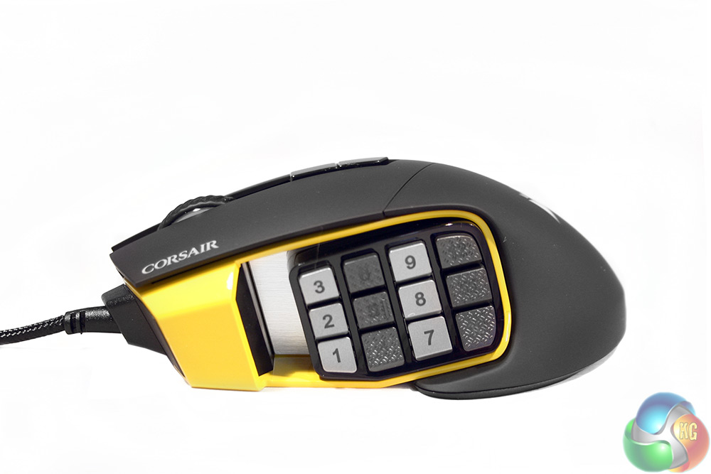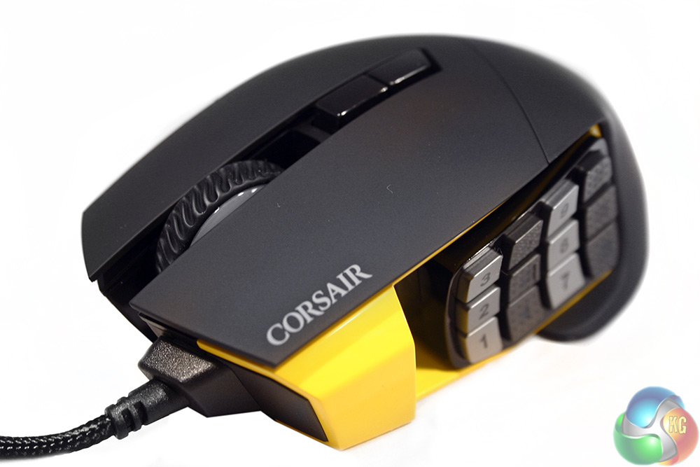 Whether you are a fan of big, multi-button mice or not, the Corsair Scimitar is a great looking mouse. It has sleek lines, a unique look and once again, I love the yellow accenting with the black. It is such a fun change of pace from the usual gaming colour schemes that it is worth noting right off of the bat.