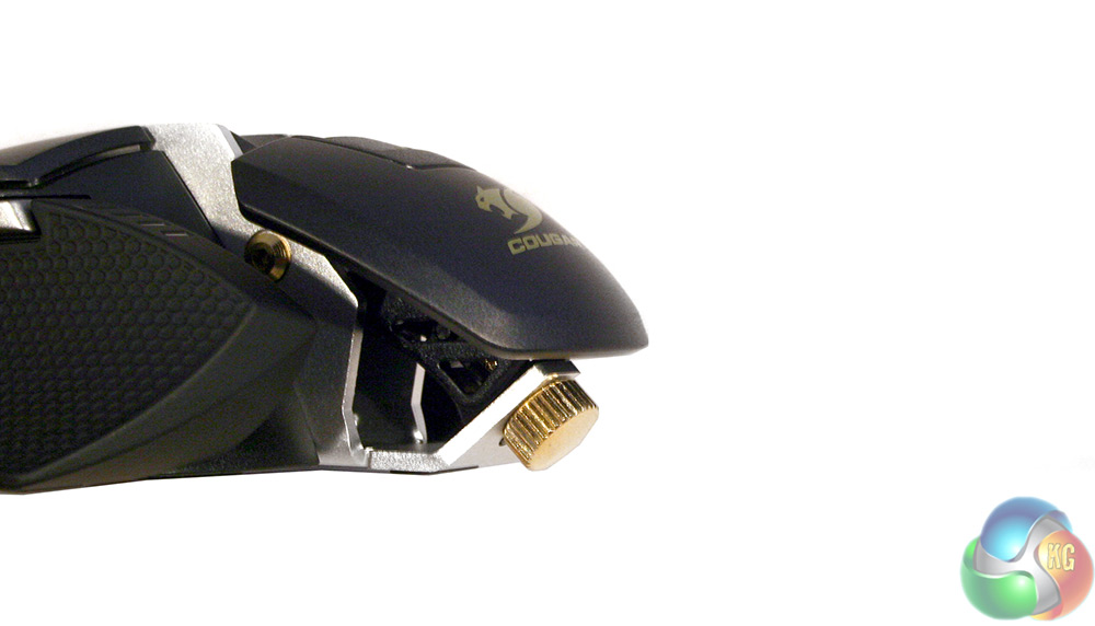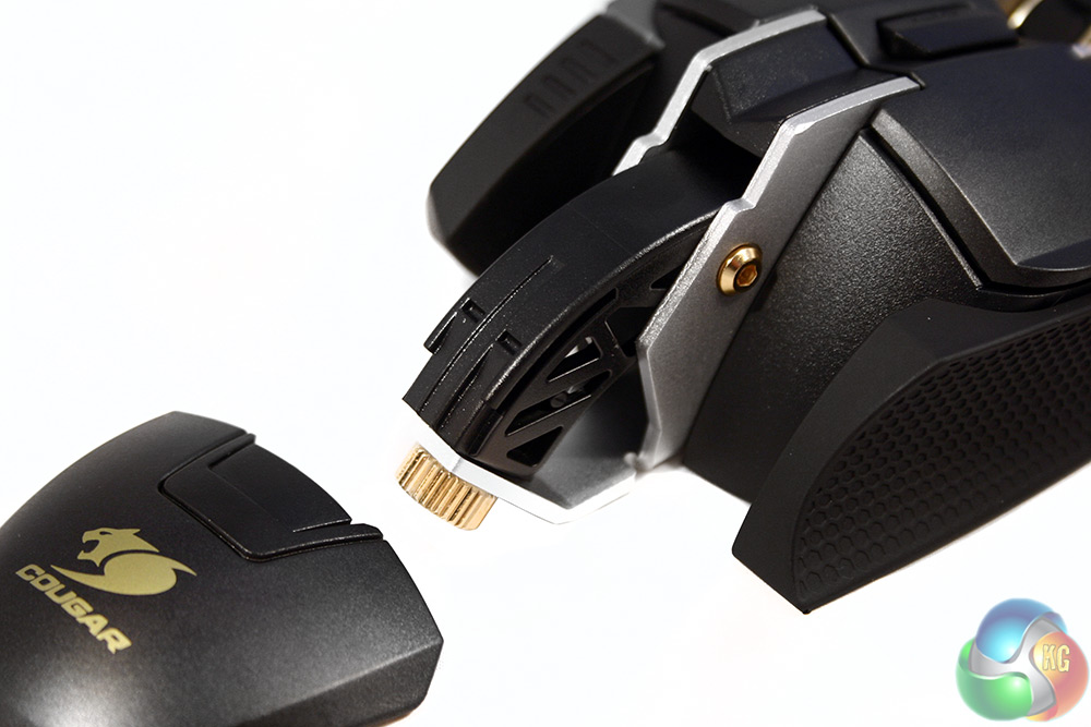 At the back, hidden under the palm wrist is a small brass thumb screw. This raises and lowers the rear portion of the mouse, to switch between claw and palm gaming position. It surprisingly works really well and does not feel gimmicky in the slightest.