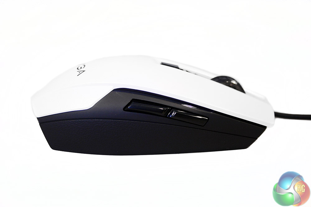 The sides of this ambidextrous mouse are identical, with the same reptile skin plastic grips and twin buttons for added function. They are however in a press, rather than a rock position, so you will need to lift off your thumb or forefinger to press them.