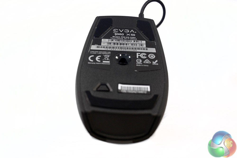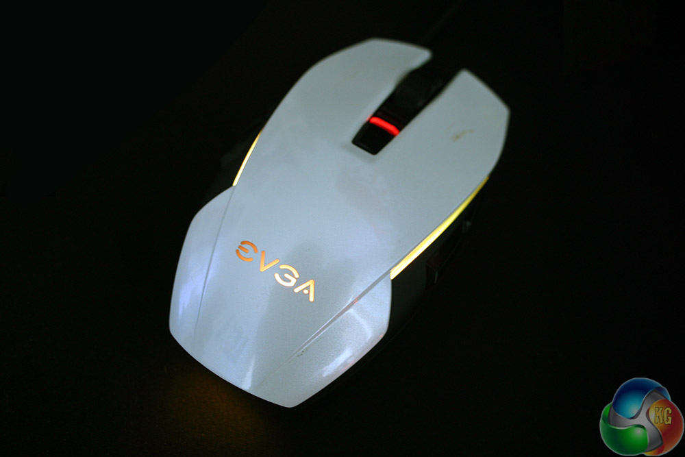 Styling points include the see through EVGA logo at the rear, which lights up with LED lighting when powered on. There are twin strips down the sides, which also have a glow around them when the mouse is plugged in. There is another lighting strip located at the rear.