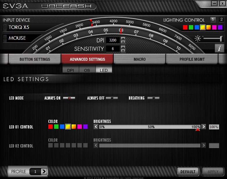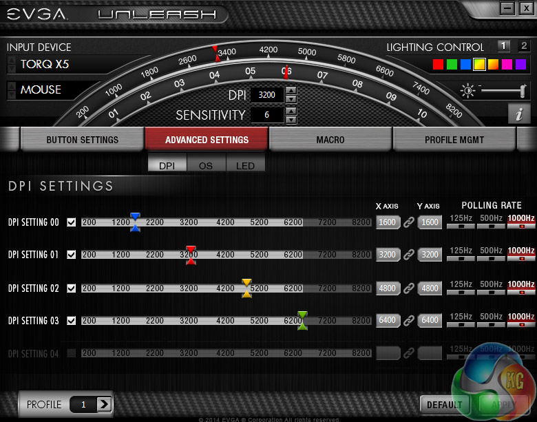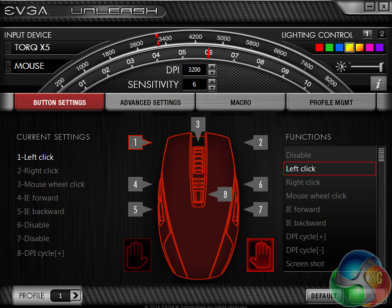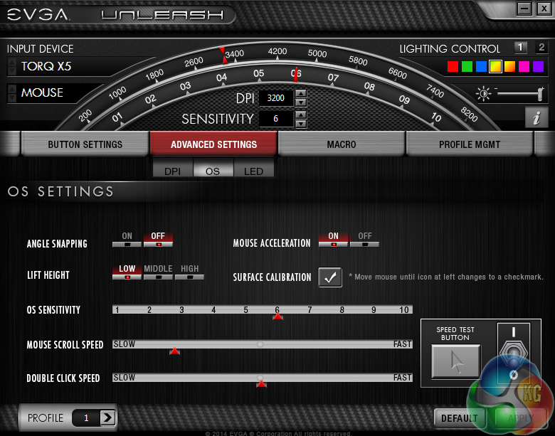 The software that EVGA offers with the Torq X5 is in-depth, giving options for button remapping, tweaks for lift-off, acceleration, double-click speed and there is even a surface calibration tool to let it figure things out for you automatically. Lighting options are a little on the light side, but the Torq X5 is not designed to target high cost competitor products.