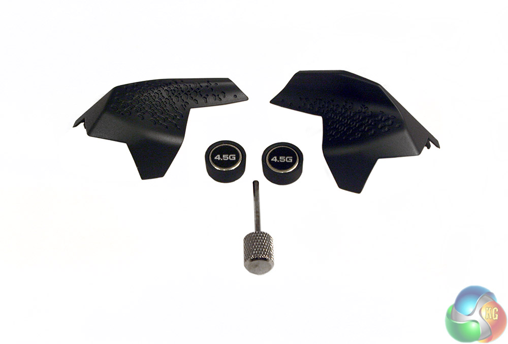 There are a few additional pieces, including a quick-start manual, warranty guide, additional weights, palm-rest screw for adjustments and a pair of alternative finger and thumb rests.