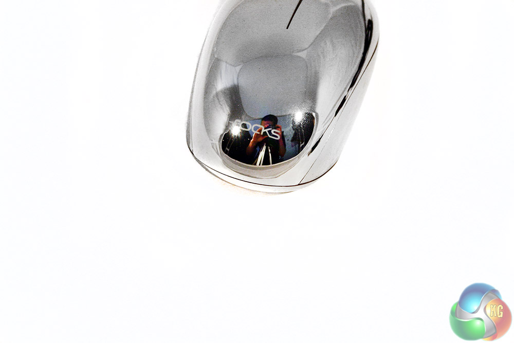 The mouse itself is unique looking. It has a chrome finish and is entirely mirrored. Yes, that is me waving in the image.