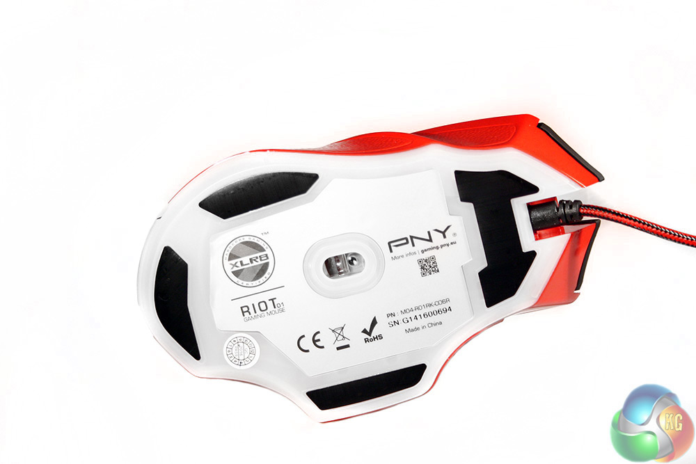There is a small PNY logo at the rear which is a little more understated than the rest of the design, with a clear-plastic XLR8 logo which lights up when the mouse is powered on.