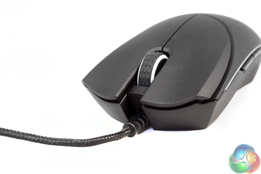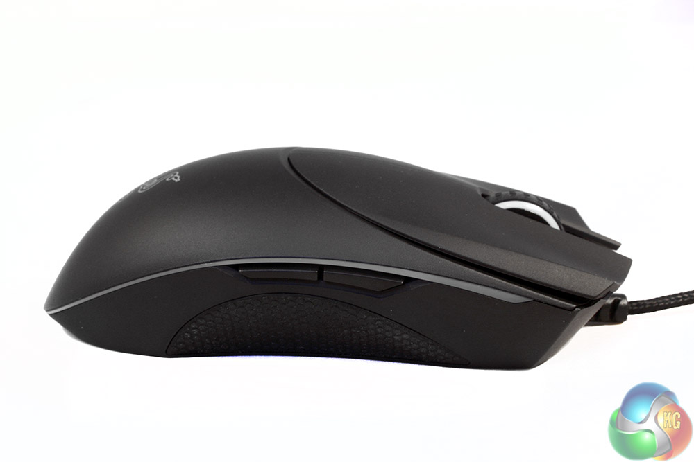 The whole build is very solid, with no creaking in the frame when flexed or squeezed. The whole construction is black plastic, with a light texturing on the left/right mouse buttons for added grip and to avoid the slipping dangers associated with high-stress perspiration.