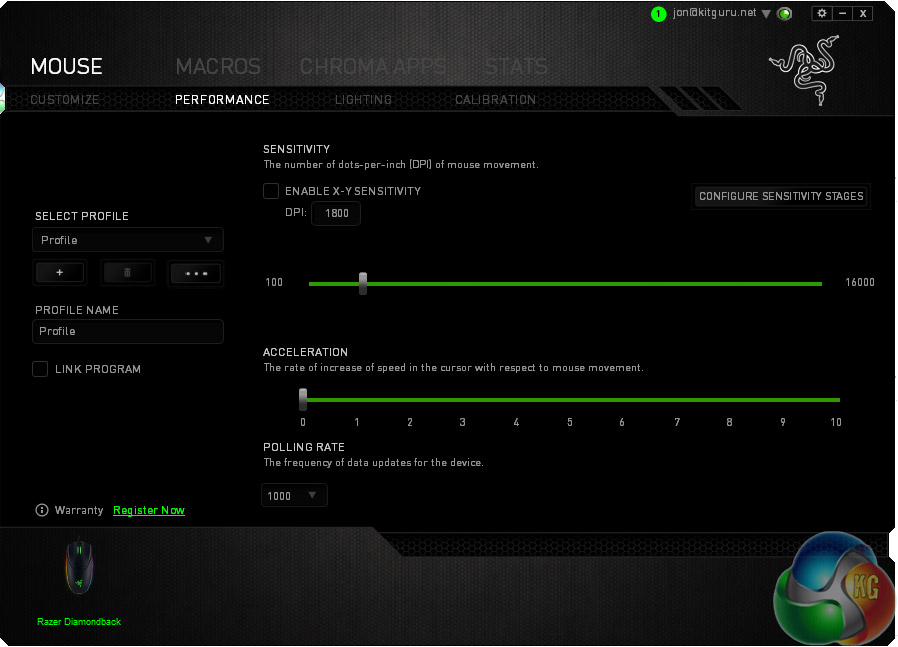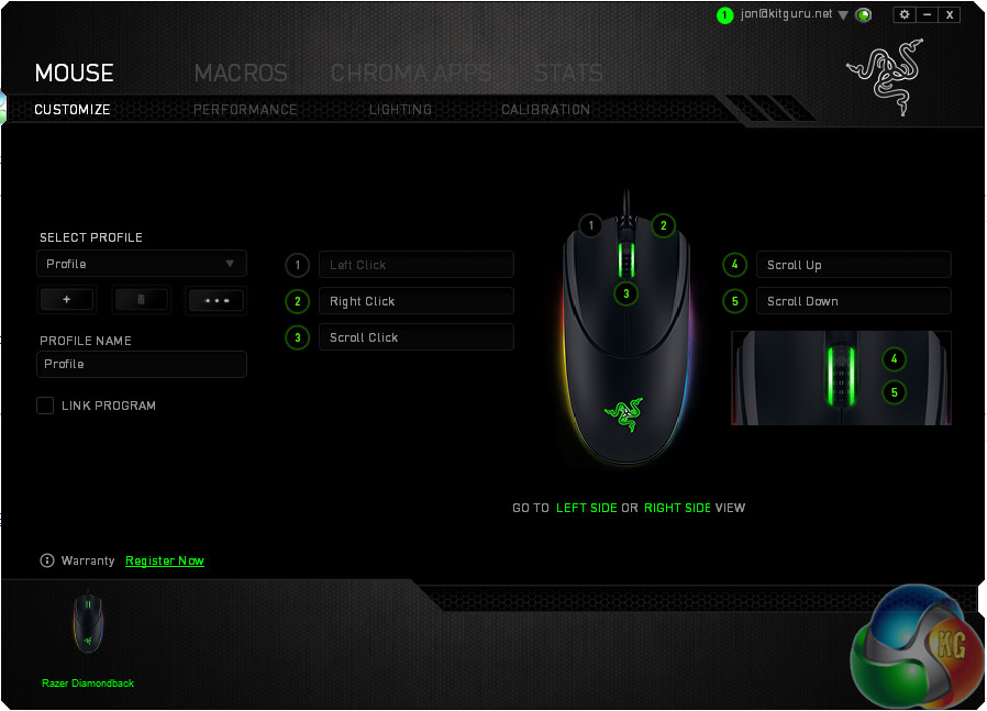 The first step in using any gaming mouse as high-end as the Diamondback, is to install its companion software. Razer has a unified system for its peripherals known as Razer Synapse, which is quite a chunky install compared to some. I ran into a couple of issues when updating it however, as it managed to disconnect the USB keyboard I was using, as well as my attached Oculus Rift DK2.