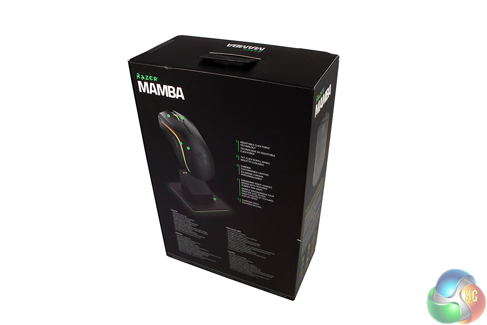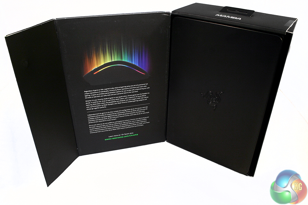 As with most Razer products, the packaging for the Mamba 2015 RGB is high quality, featuring a magnetic-flip lid and high-DPI photos of the mouse itself on the front. The rear of the box highlights some of the key selling points.