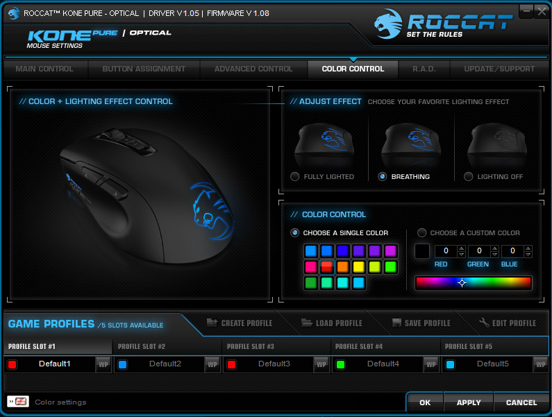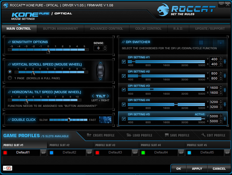 Whether I played a fast paced shooter, or a relaxed sandbox builder where I am content to proceed at my own pace, I found the Roccat Kone Pure very capable indeed, even before I installed the drivers. While the Kone Pure Camo Charge works well out of the box, once you have installed the drivers – which were a bit of a pain to find, but they work flawlessly despite beta status – there is a whole host of options to play with.