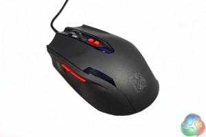 Like its original inspiration, the Black FP features a matte black, pearlescent paint job, accented with some red styling in a few key places. The back features a translucent Tt eSports logo, which shines through when the mouse is powered on.