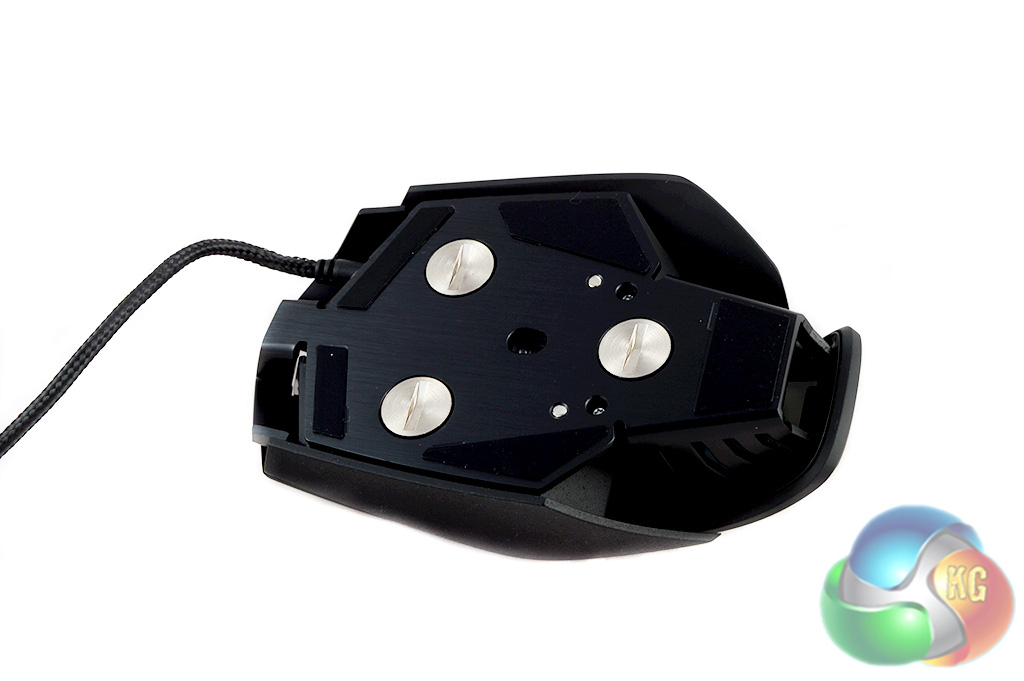 On the bottom of the mouse is an aluminum base to help keep it light weight along with three screws, which hold little weights inside. This will allow users to customize how heavy or light they want their mouse to be, which is always a huge plus as gamers tend to appreciate customization options.