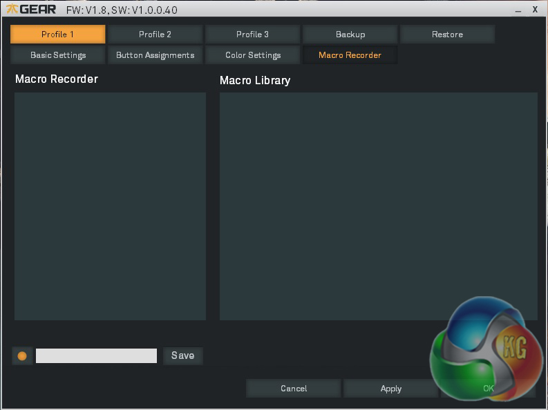 Finally, there is a macro recording tab. There aren't many additional mouse buttons to save a macro command to but having the option doesn't hurt.