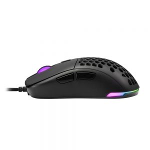 While out of the box, the Light² 180 has a honeycomb shell, this can be swapped out for a completely closed shell instead. The mouse also uses a symmetrical design, so it can be used right or left-handed. The mouse also comes with three PTFE feet to ensure a smooth glide on most surfaces. As you would expect from a modern gaming mouse, the Light² 180 does have RGB lighting, which can also be customised through Sharkoon's software.