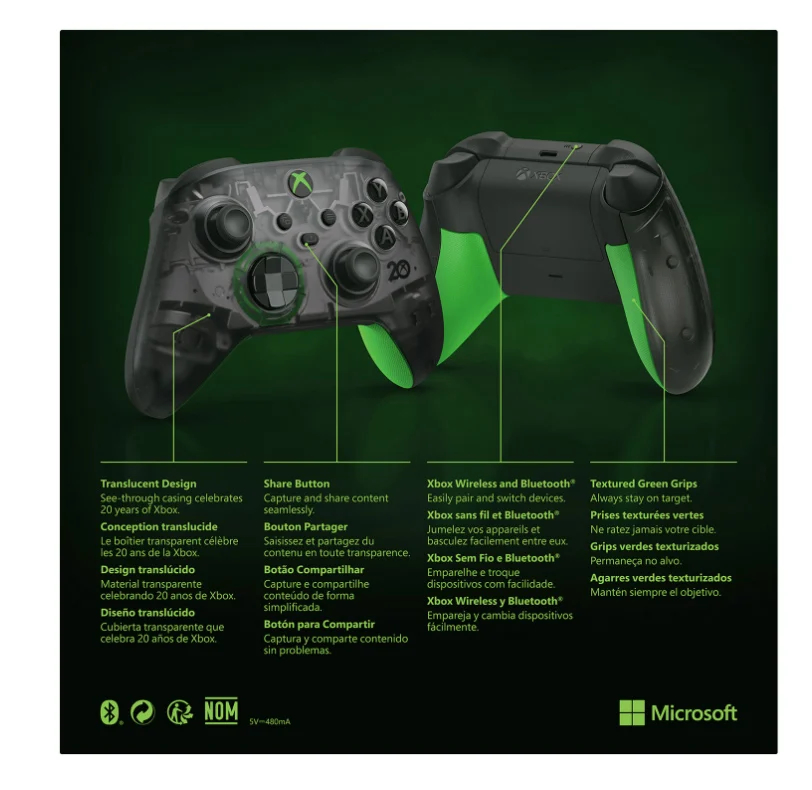 The controller itself “features a transparent black design with vibrant green details that stay true to Xbox’s signature style while thoughtfully designed buttons and a hybrid D-pad enable precision, tactical gameplay.”