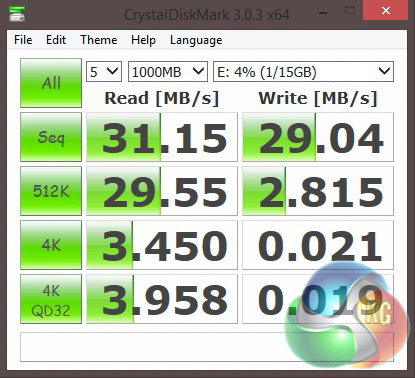 USB 2.0 performance is very limited, hovering around 30 MB/s for both read and write speeds. USB 3.0 has become more common in recent years but USB 2.0 still remains widely used so it's always worth taking both speed results in to account.