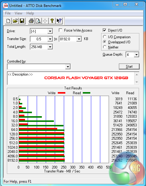 The Corsair Flash Voyager GTX 128GB is unquestionably top of the performance chart. With the UASP driver operating in Windows 8, performance is dramatically boosted to 459 MB/s and 348MB/s in the sequential read and write tests respectively.