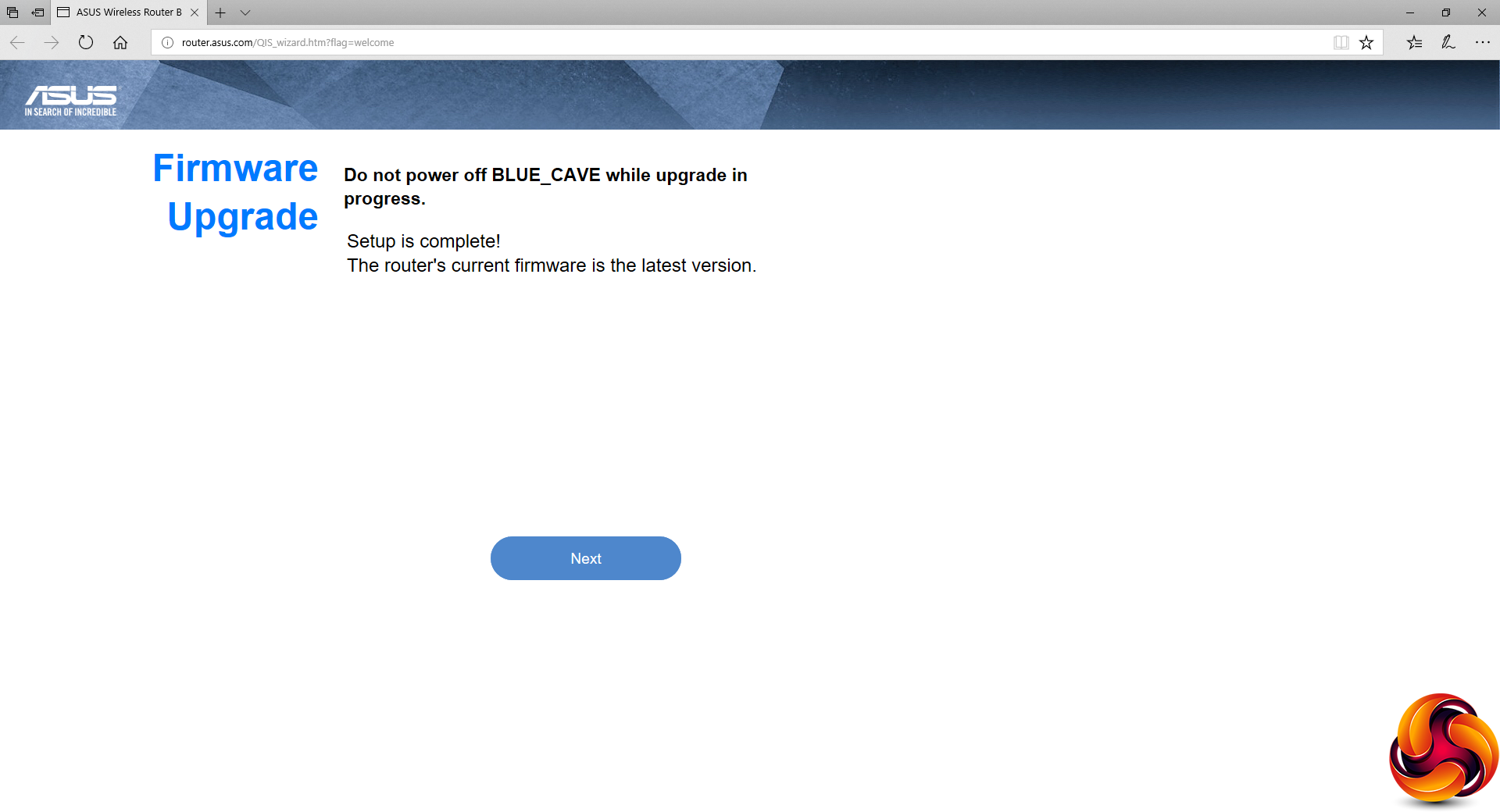 Assuming your Internet connection is working, the Blue Cave will then see if there's a firmware update available, install it, and finally take you to the login for the main administration interface.