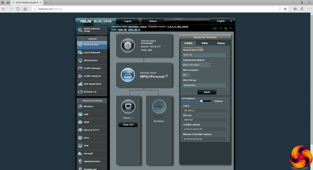 The main Blue Cave interface is essentially the regular ASUS router interface. The Network Map is the default view, giving you an overview of settings and which device are connected to the network.