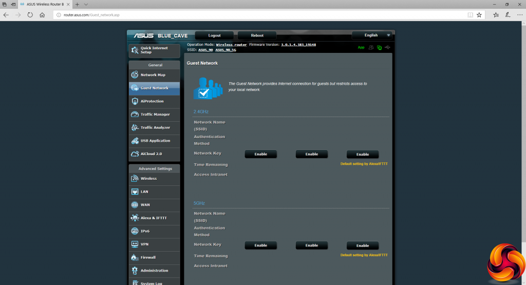 By now, if you've managed to read this far at all, it will be clear that this is no router cut down in favour of user friendliness to the detriment of abilities. This is the full ASUS administrative back end, as found on its less design-oriented products. It's absolutely ram-packed with features, and could even be accused of having too many options. Certainly, if you bought the Blue Cave because it looks nice, you're going to get a shock with the administrative interface.