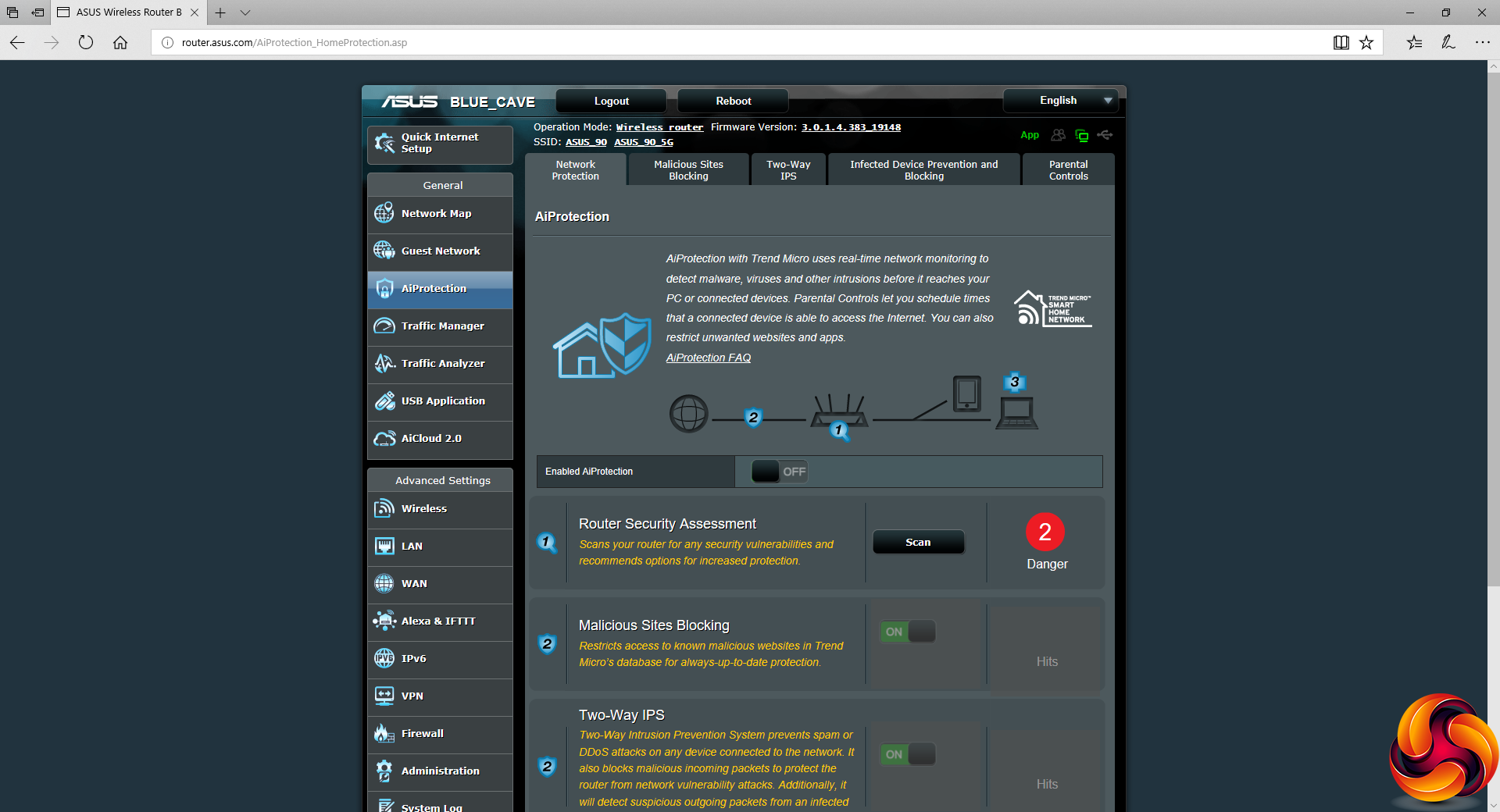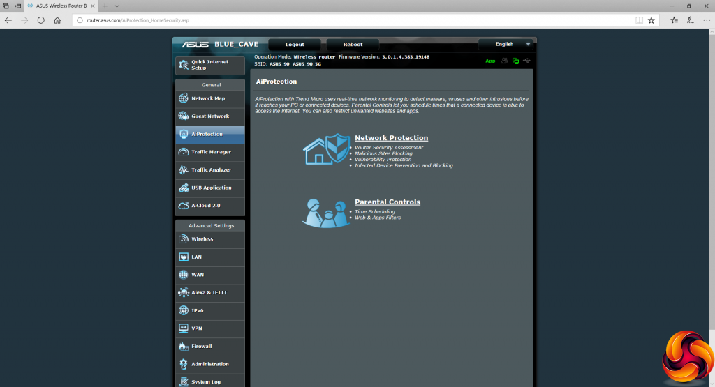 The AiProtection section has been developed using technology from Trend Micro. It has two main features – Network Protection and Parental Controls. The former includes a system to scan your router for any settings that leave you vulnerable. You can block known malicious websites, and enable two-way intrusion protection, as well as blocking devices that have been detected as infected.