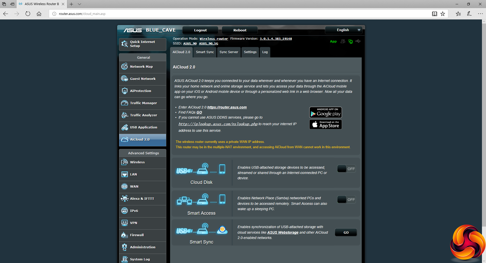 The AiCloud 2.0 system enhances the external access to a USB storage device, or network file shares on PCs on the network. Storage can even be synchronised with a cloud storage repository.