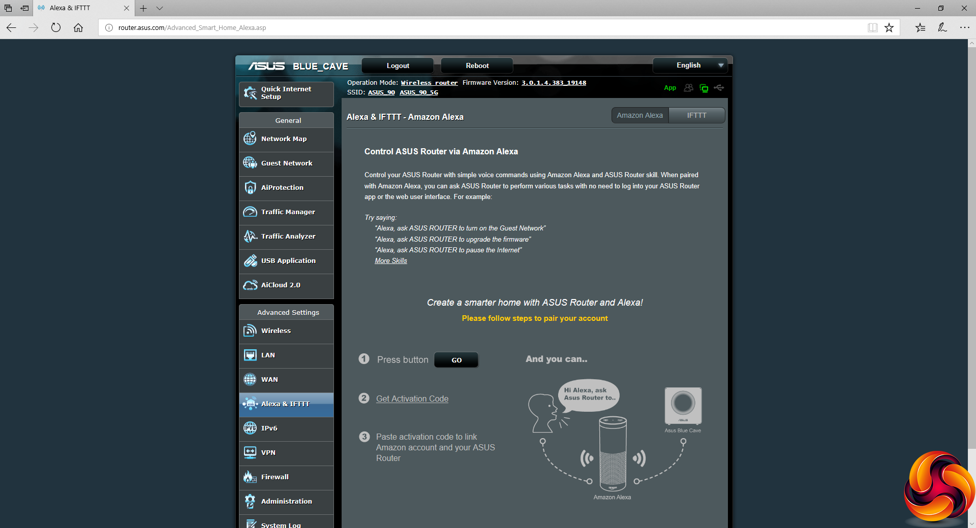 Now we get to the promised smart home features. There are currently 11 Alexa commands the ASUS router will respond to, including things like turning on the Guest Network. You can also set up If This Then That (IFTTT) rules, such as sending an email when a particular user's computer is detected on the network.