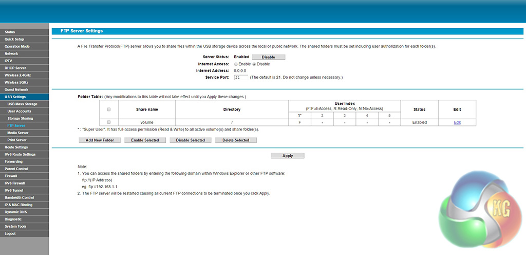 One cool feature that TP-Link has packed in is the ability to hook up an external storage device and create a media server. The settings will allow you to control who has access among other security features.
