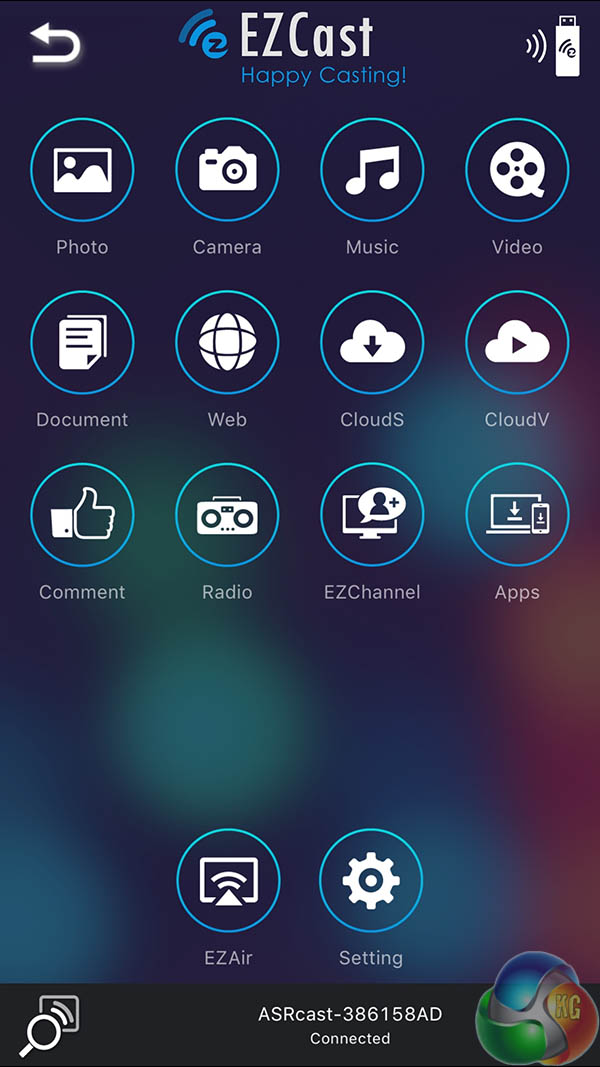 With the app installed on an iPhone, we followed the instructions by downloading the EZCast app and then connecting to the H2R’s built-in SSID displayed on the screen.
