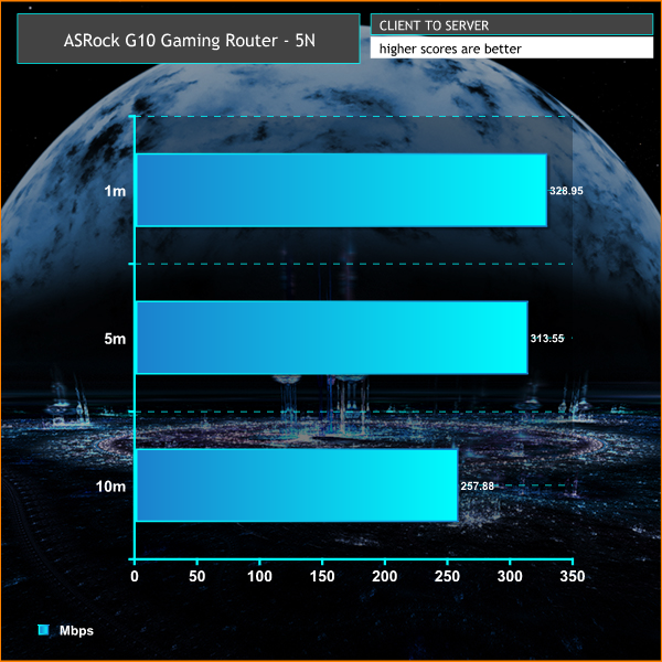 But this is a router review, not a wireless dongle review, and you probably came here to see how fast ASRock’s Gaming G10 Router could go. It’s mostly good results here, with the exception of middling 802.11n 2.4GHz performance.