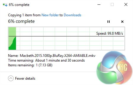 The USB 3 port manages read speeds of roughly 100 MB/sec and write speeds of 84.8 MB/sec.