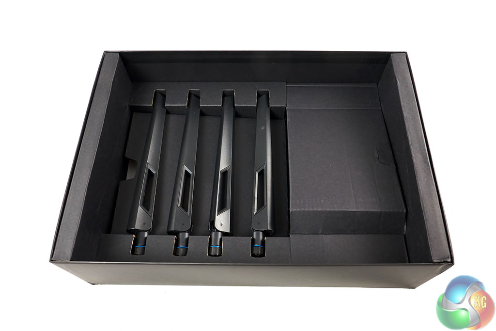 Four removable antenna are included in the box, along with multi region power plugs and a power adapter.