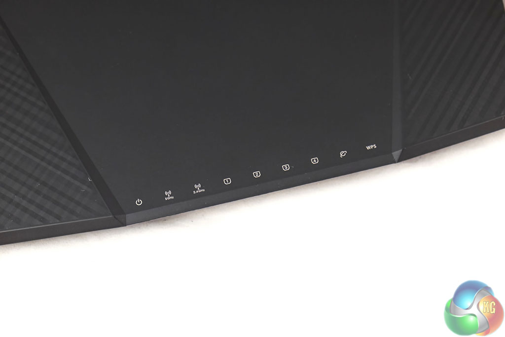 LED's on the front relate to power status, 2.4GHZ and 5GHZ radio transmission, ethernet ports, Internet connection and WPS.