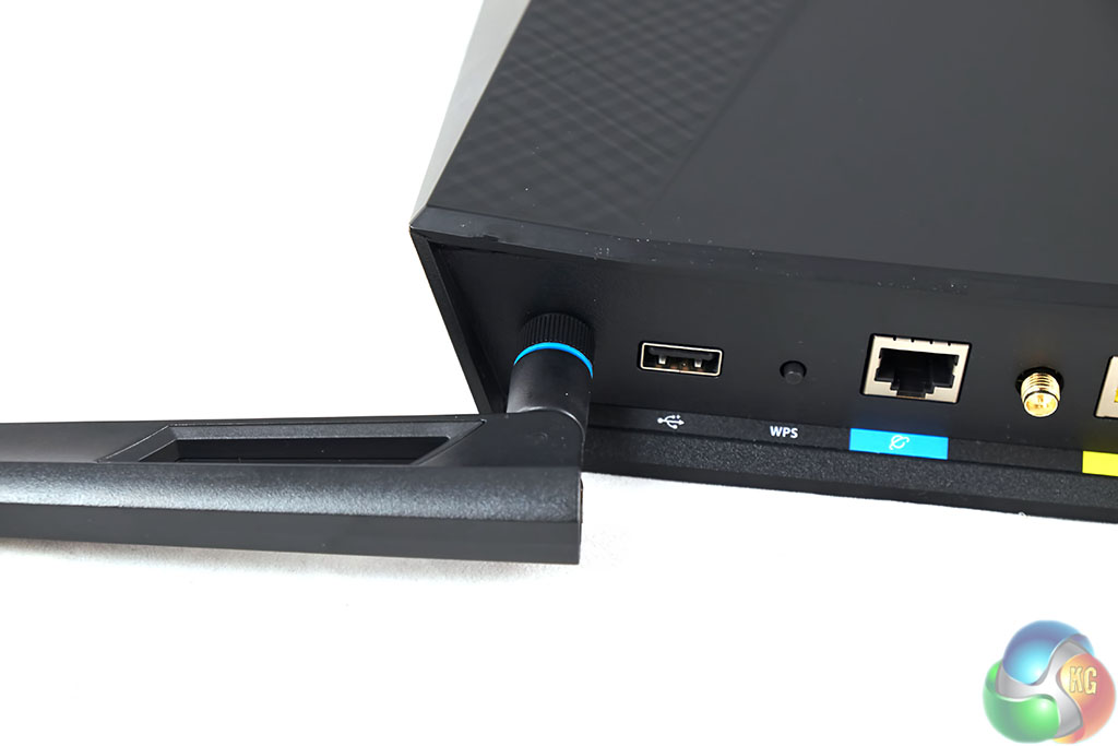 At the rear of the RT-AC87U is a power connector, power button, reset button, four GB LAN ports, GB WAN port (for modem), USB 2.0 port and WPS (Wi-Fi protected button). The LAN ports support Link Aggregation, which is a pretty cool feature to include.