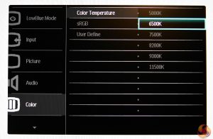 On the bright side, all the other functions and settings you would expect are present and correct with logical and easily recognisable names, and the OSD supports most major languages. We especially liked the Color Temperature menu, which allows a generous range from 5000k all the way up to 11500k.