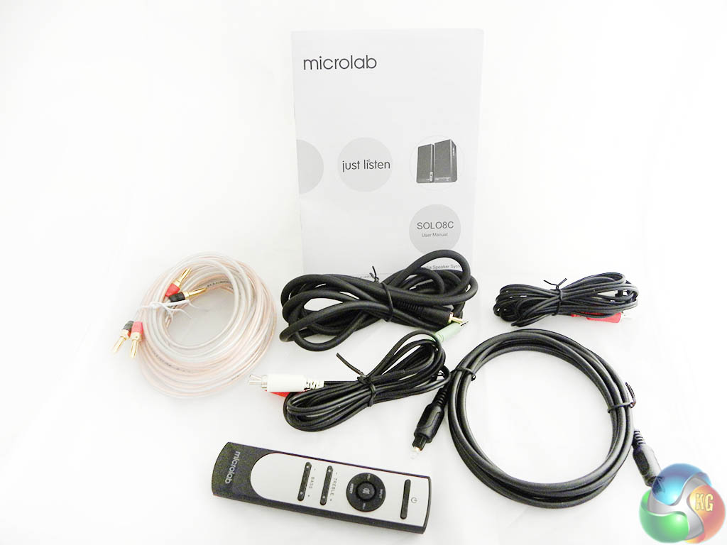Once the speakers are out you will find some thick, high quality leads and connectors for multiple devices, some instructions and a little remote: