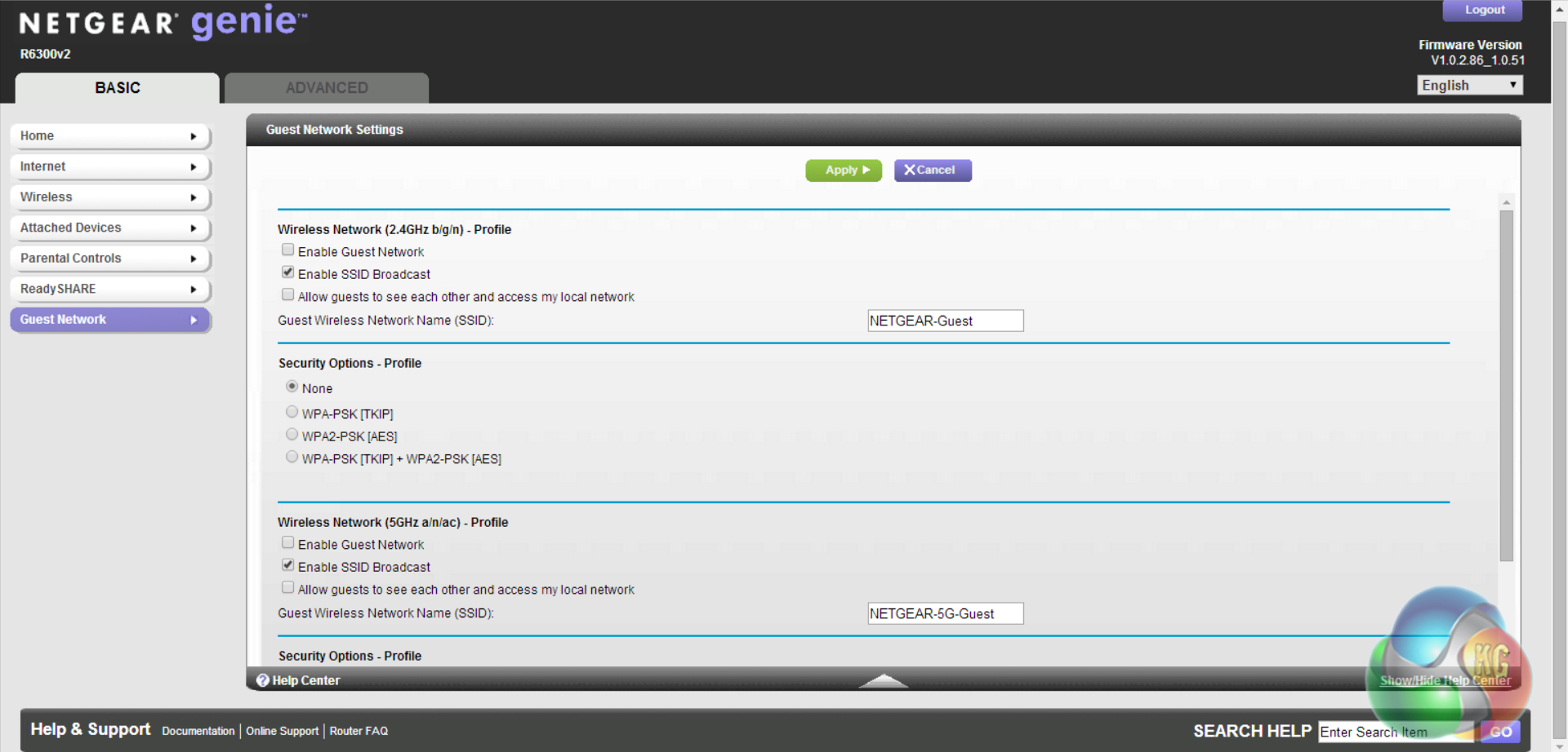 The next two tabs let us set up USB drive and printer sharing, as well as setting up a guest network.