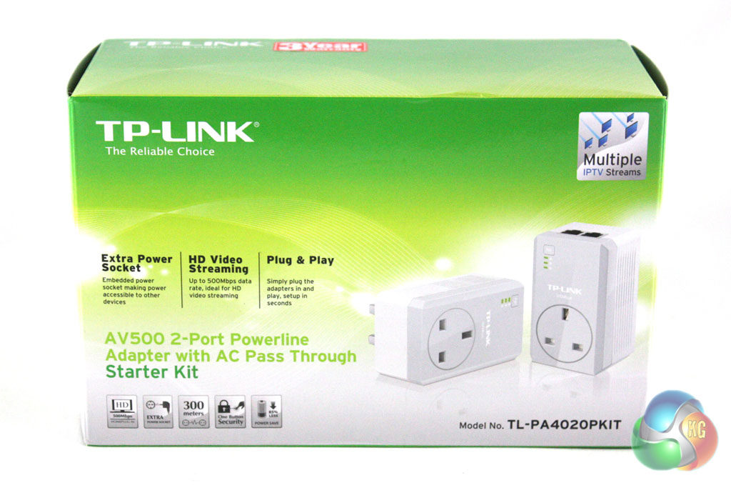 The TP-Link AV500 adapters are supplied in a fairly substantial box which is decorated in a green and white livery. The front of the box details the headline features alongside a reasonably large image of the two adapters which can be found within.