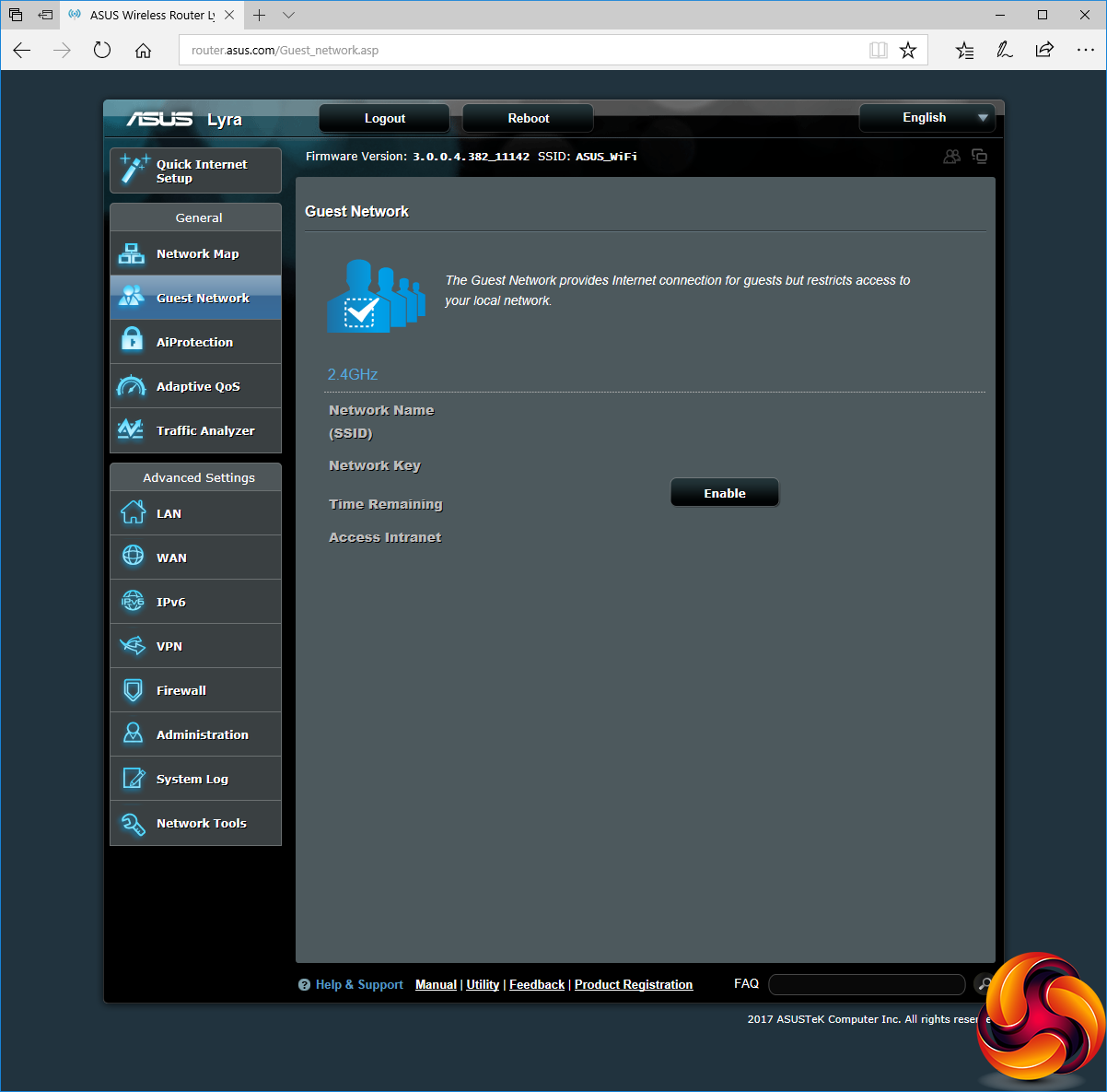 You can set up a guest WiFi network to segregate visitors from permanent users, and turn this off when you don't have any visitors for added security. There's a simplified firewall system supplied by Trend Micro called AiProtection, which provides resistance to certain types of hacking attack.