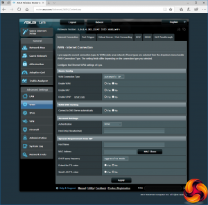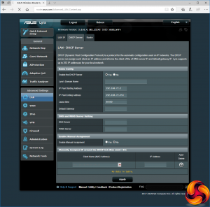 The LAN and WAN options offer management options for how your IP addresses behave. You can configure the dynamically assigned DHCP IP address pool, and permanently set some IP addresses to specific MAC addresses. The WAN section includes useful tools like port triggering and port forwarding, so you can serve games hosted on your local network to external users (for example). You can also set up a DMZ, DDNS via a wide variety of popular services including DynDNS and No-IP, plus NAT passthrough for VPN clients.