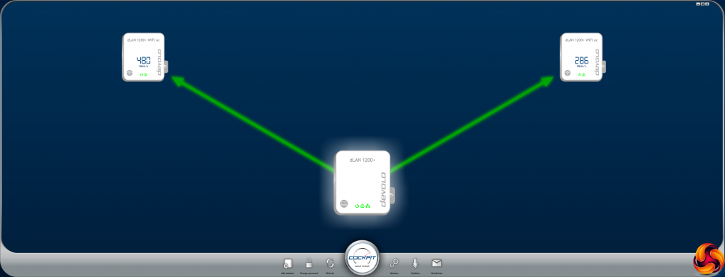 Then you can download the devolo Cockpit software for further detailed access to the devolo devices. This is supposed to be available as an app on iOS and Android, but we found that the iOS version no longer works, so we were stuck with the Windows desktop software. Loading this up shows a schematic of your powerline network and the current throughput between devices.