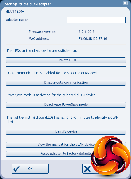 You definitely need the Cockpit software to access these general settings, which are available for all dLAN devices, whether they incorporate WiFi or not. These allow you to toggle PowerSave and whether the LEDs are operational.