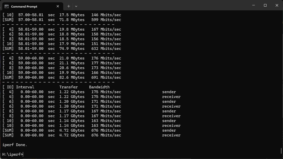 We used the open-source iPerf 3.1.3 software for testing, which can simulate multiple clients streaming at once. Three Windows systems were employed. Our desktop base was an Armari 32-core AMD Ryzen Threadripper workstation running Windows 11. This was connected to the router with a 10Gbit Ethernet card, attached via Cat6 cable to one of the ASUS router's 10Gbit Ethernet ports.