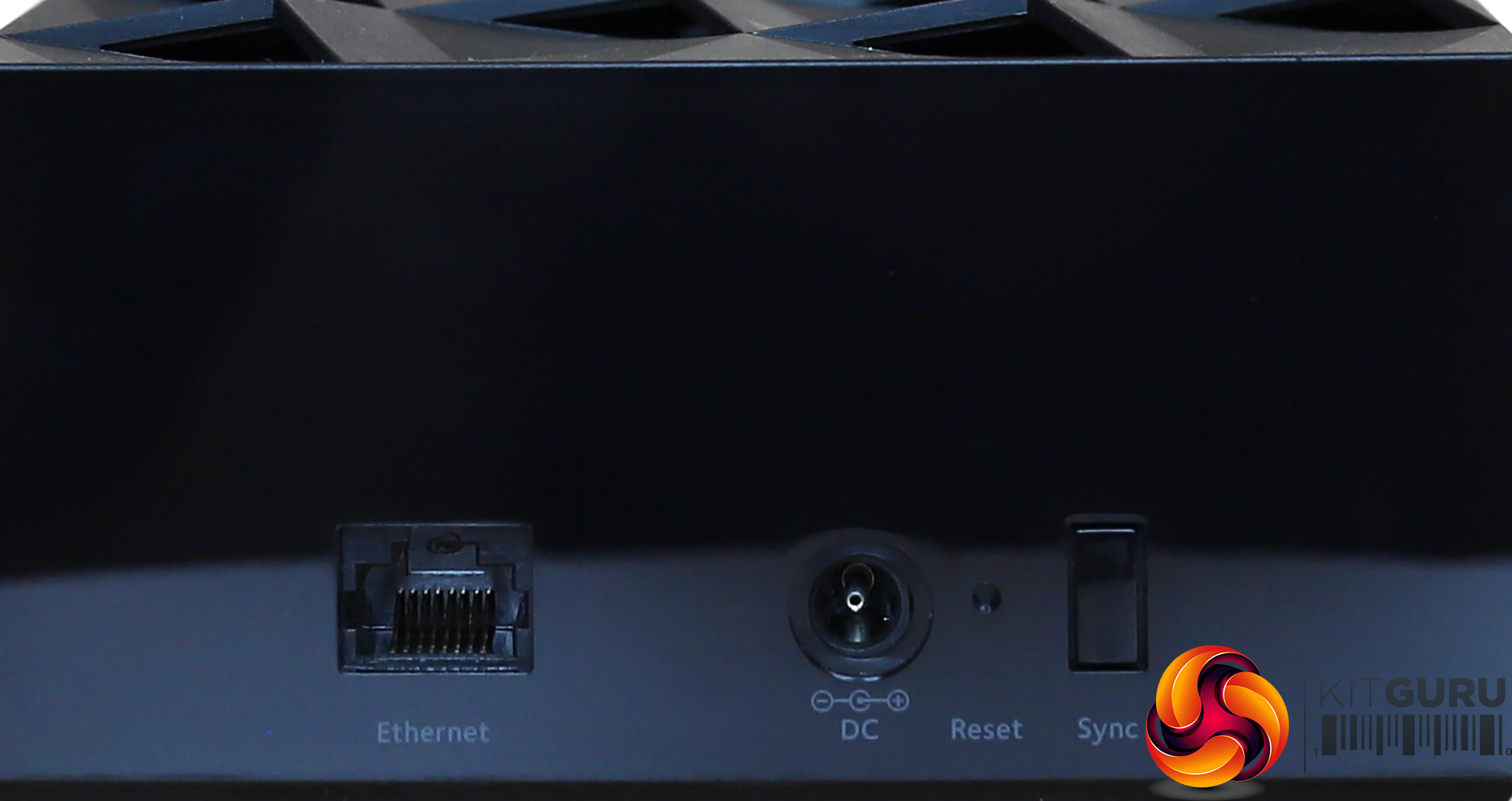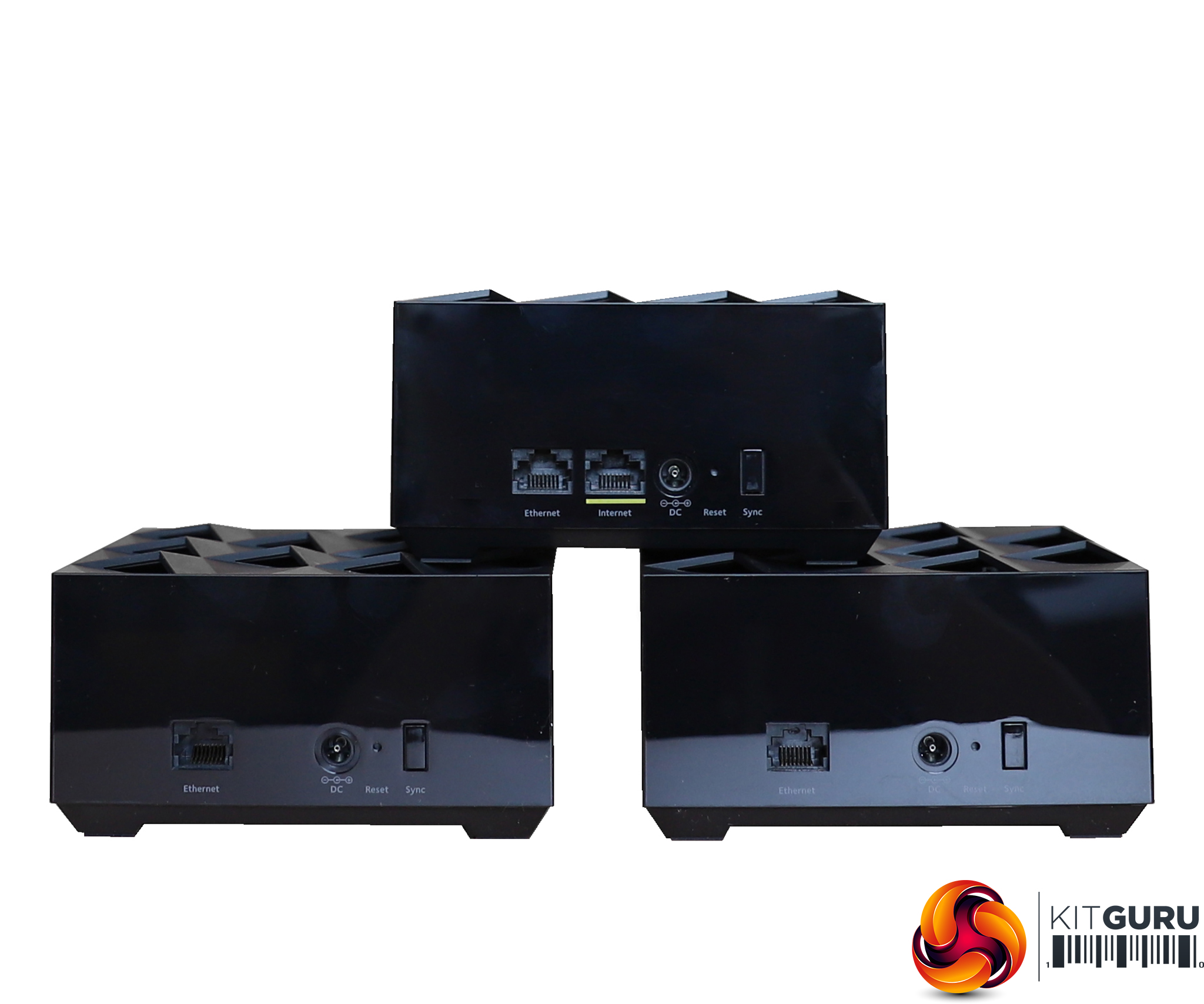 The router and satellites are slightly different in terms of port allocation, with the router having Gigabit Ethernet for WAN as well as for a client device. Both have a Sync button to help you connect a new satellite, although the three-pack comes pre-paired. Strangely, there's no power button. And no USB connection for attaching a printer or storage for network sharing.
