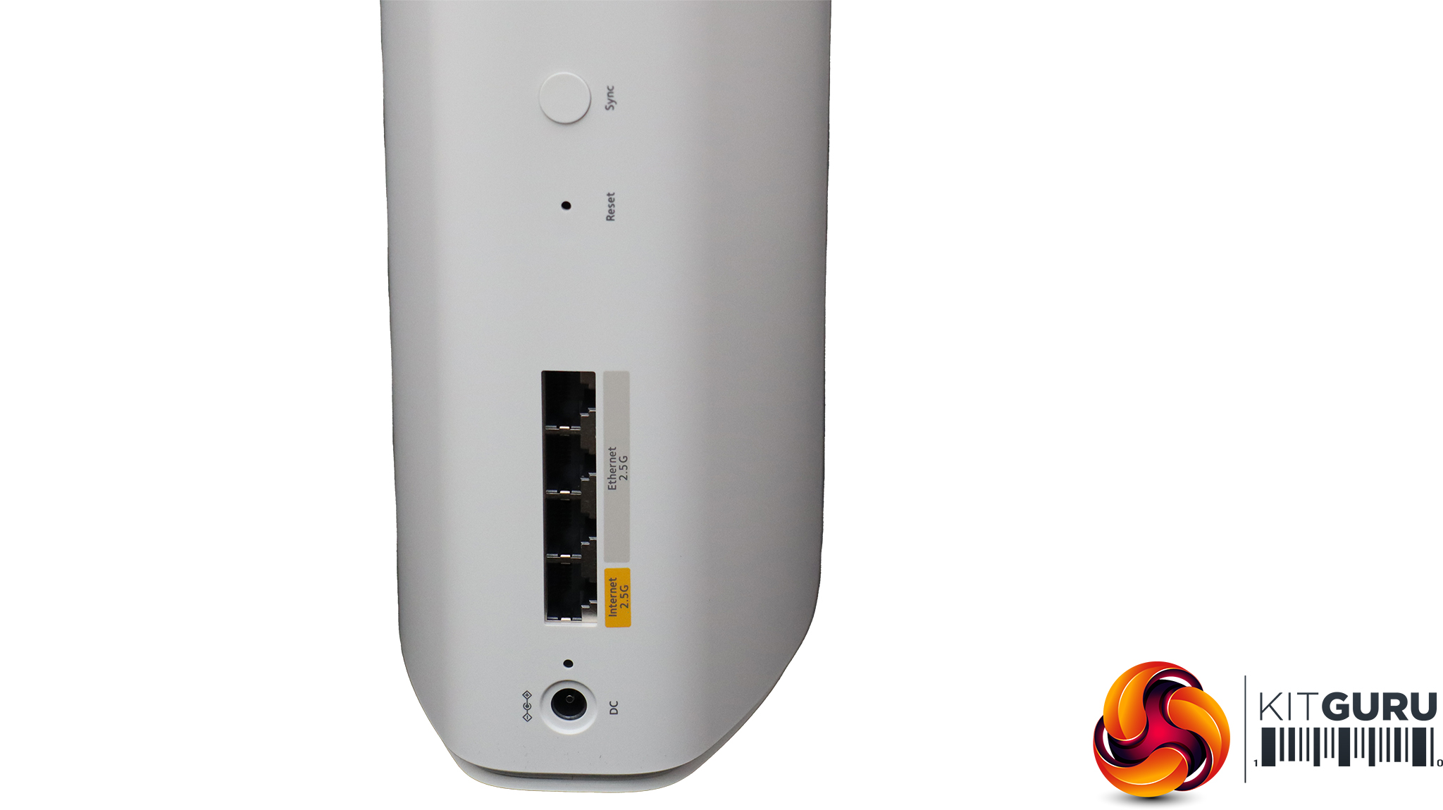 There is a slight difference when you look around the back of the units. The Router has a WAN port (in yellow) plus three LAN ports, all of which operate at up to 2.5Gbit Ethernet speed. There's a recessed reset button and a sync button for setting up the mesh. The Satellites have these too, plus just a pair of 2.5Gbit Ethernet LAN ports.