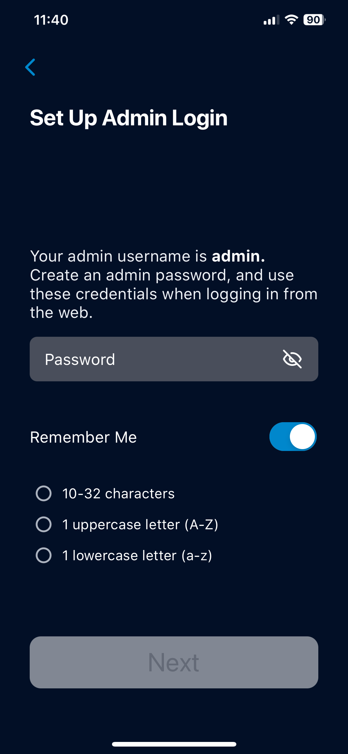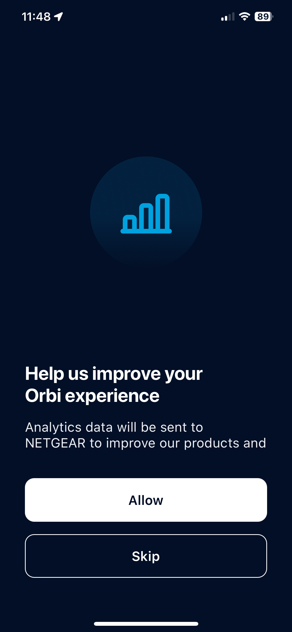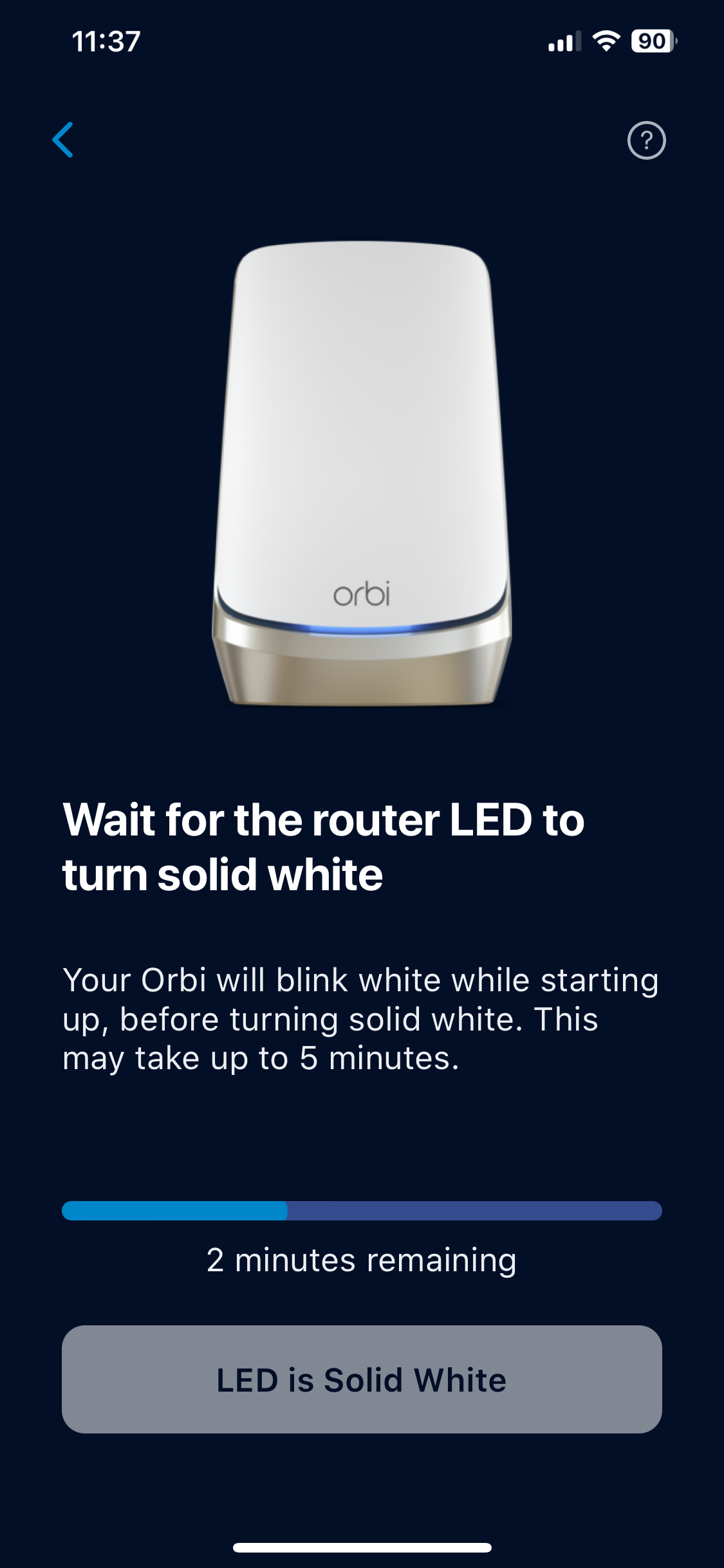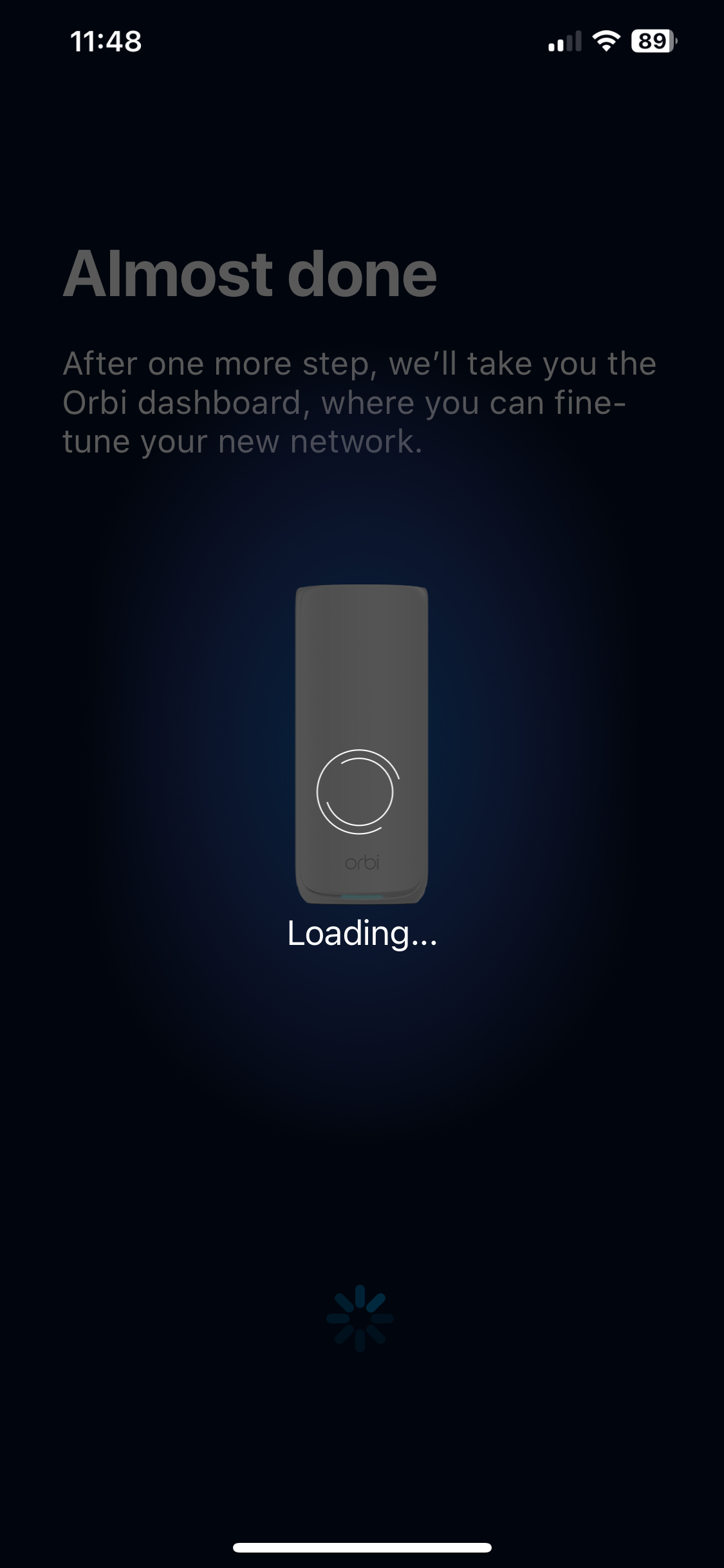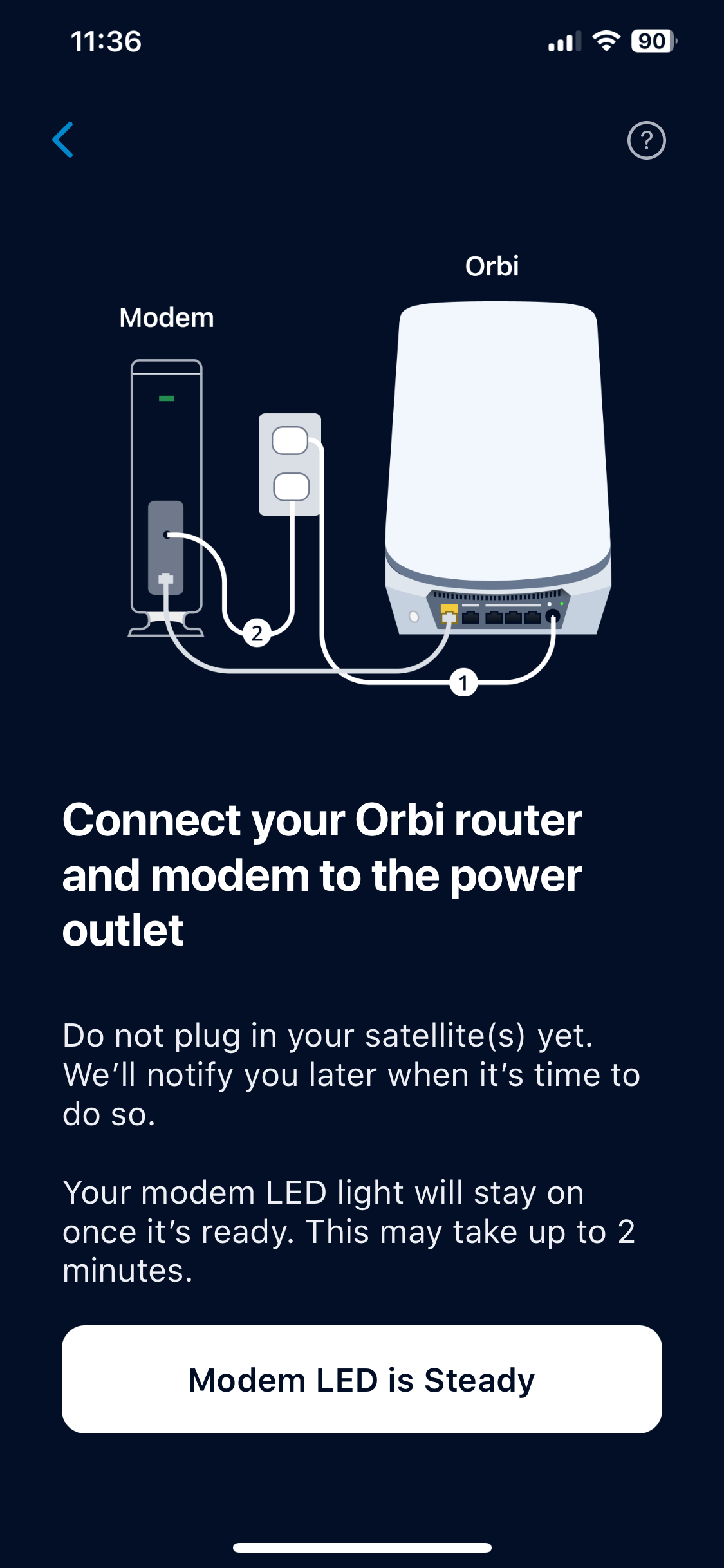 The smartphone app wizard first sets you up with a NETGEAR account, or you can log into an existing one. It will then prompt you that your Orbi isn't configured, and will guide you through the process, starting with plugging everything in. You then connect to the Orbi's WiFi using the details on the front of the router or on the bottom of any of the devices. You're then led through creating your WiFi network, setting up an admin login plus security questions, and adding the satellites to the mesh.