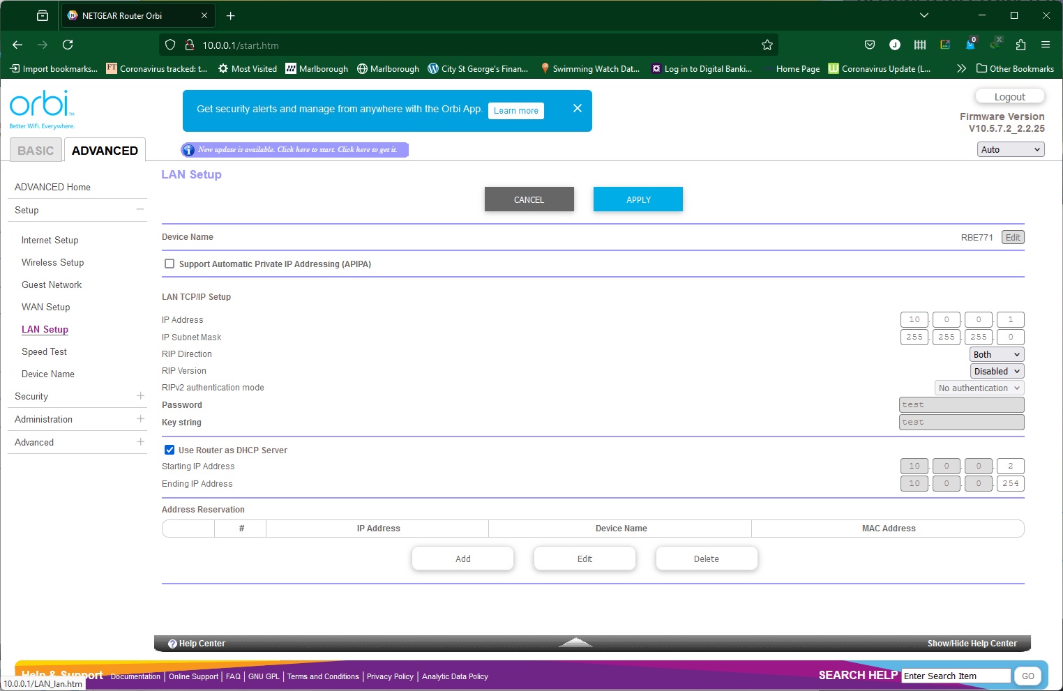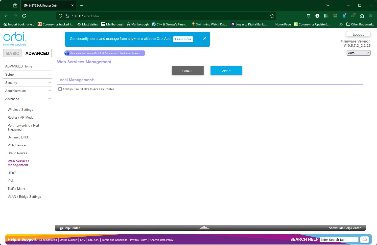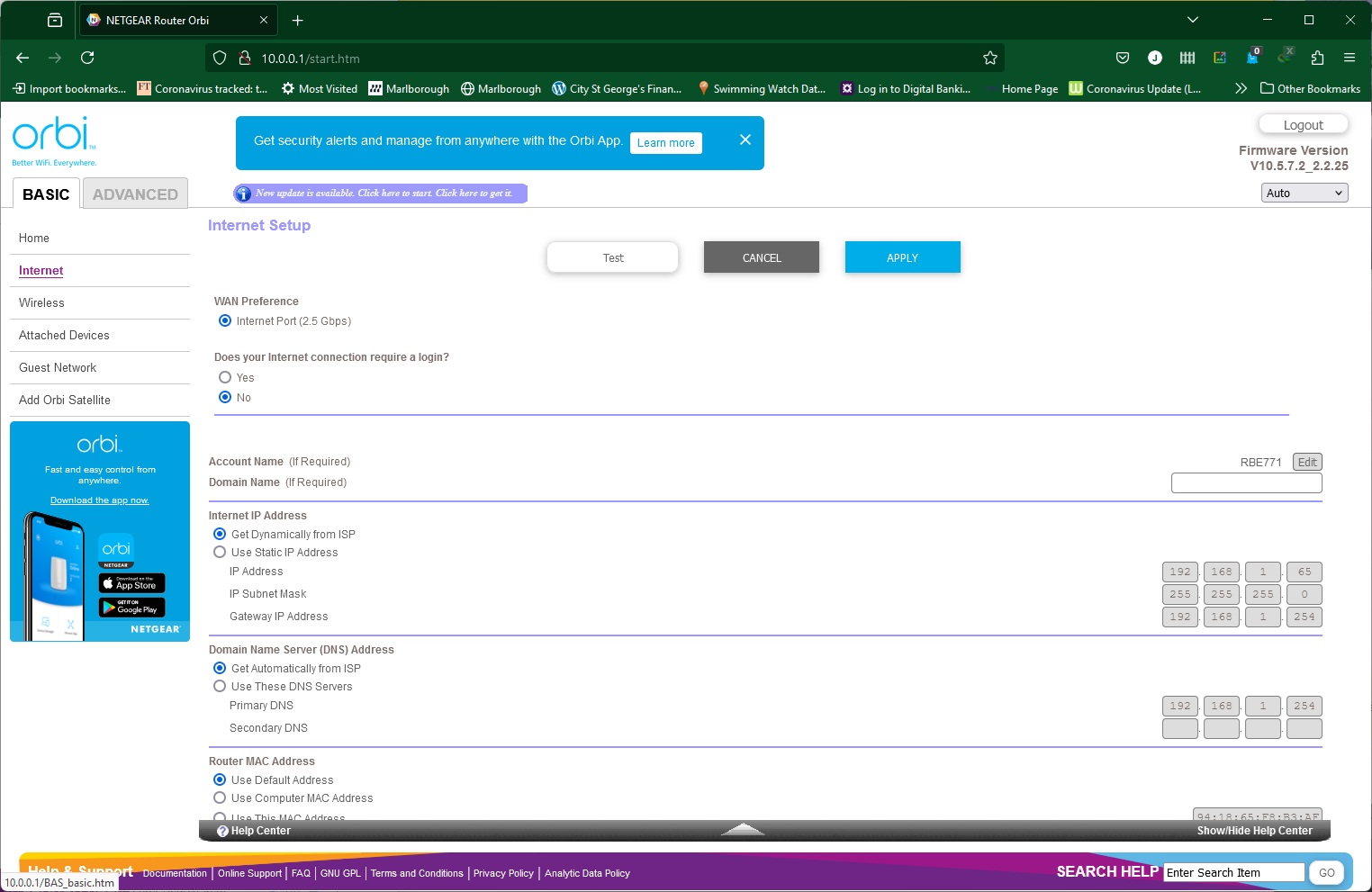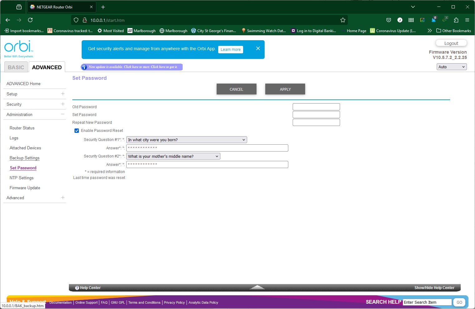 In the Router Status section you get yet another overview of the current main settings. You can browse the activity logs and choose which ones to track. There's another view of attached devices, and you can backup your router settings, as well as changing the admin password plus security questions. Although NETGEAR has its own NTP time server to set the router's clock, you can choose to use a different one if you want. Finally, the Firmware Update section will scan the router and satellites to see if there is new software to install.
