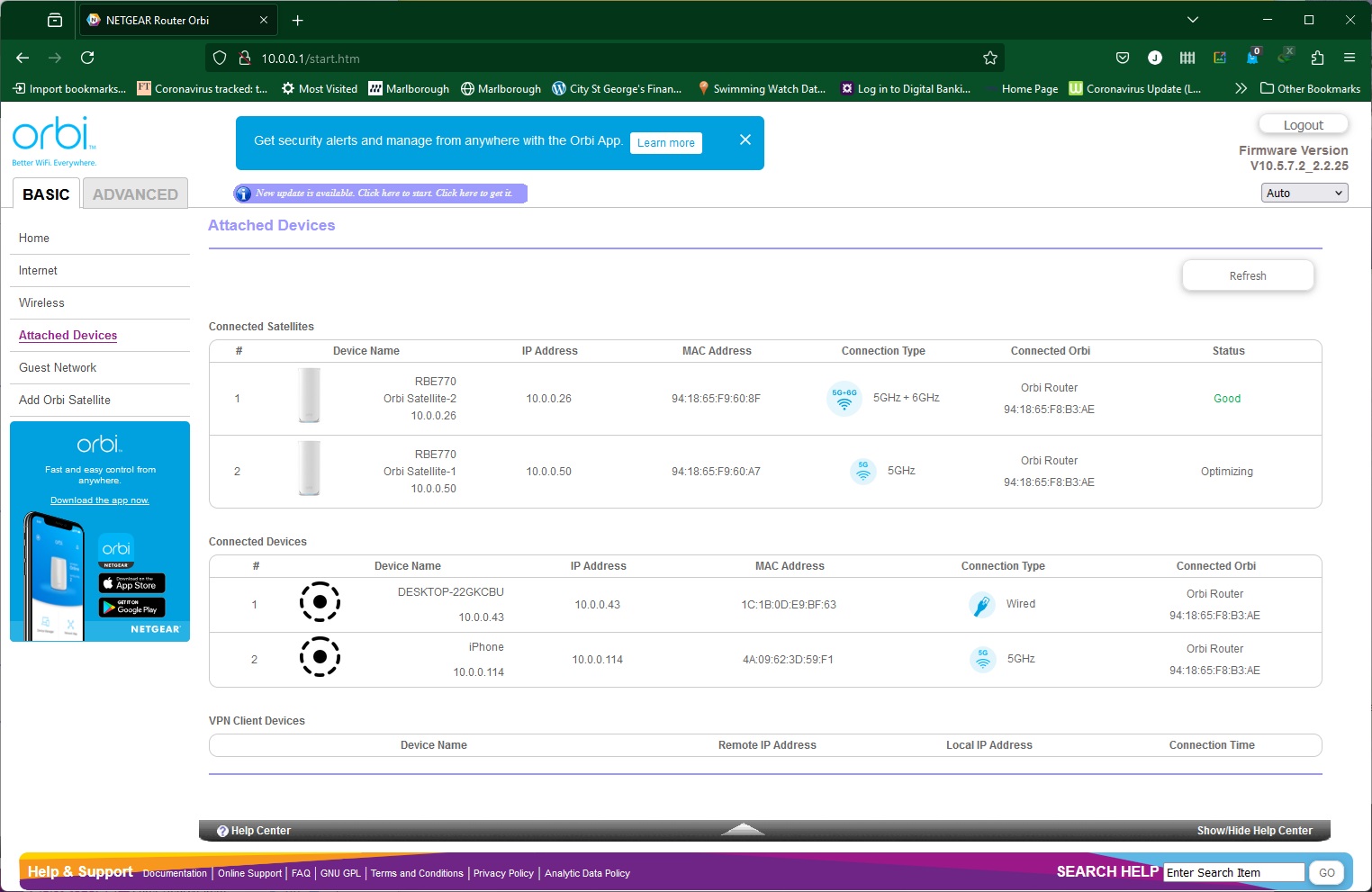 Further tabs in the Basic section let you change the way your broadband connection behaves, change your wireless settings (which includes setting up a dedicated WLAN for Internet of Things devices), browsing wired and wireless devices currently attached to the router (including the satellites), setting up a guest WiFi network, and adding more Orbi satellites to your mesh.